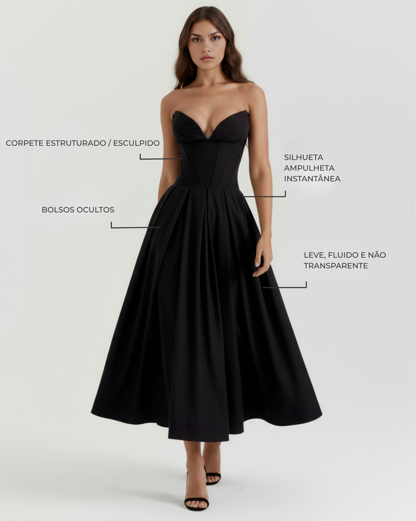 Nosso ‘Amalfi’ é simplesmente O vestido para suas ocasiões especiais desta temporada. Feminino, chique, verdadeiramente um ícone. O corpete arquitetônico e esculpido é perfeitamente estruturado para afinar sua cintura e contrasta com a saia cheia, feminina e volumosa.