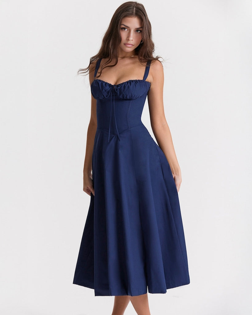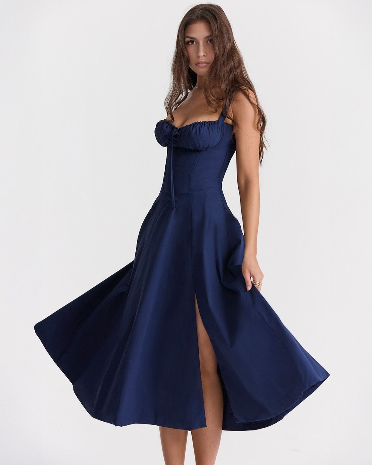 Aurora – Vestido Feminino em Algodão com Fenda e Costas Lace-Up