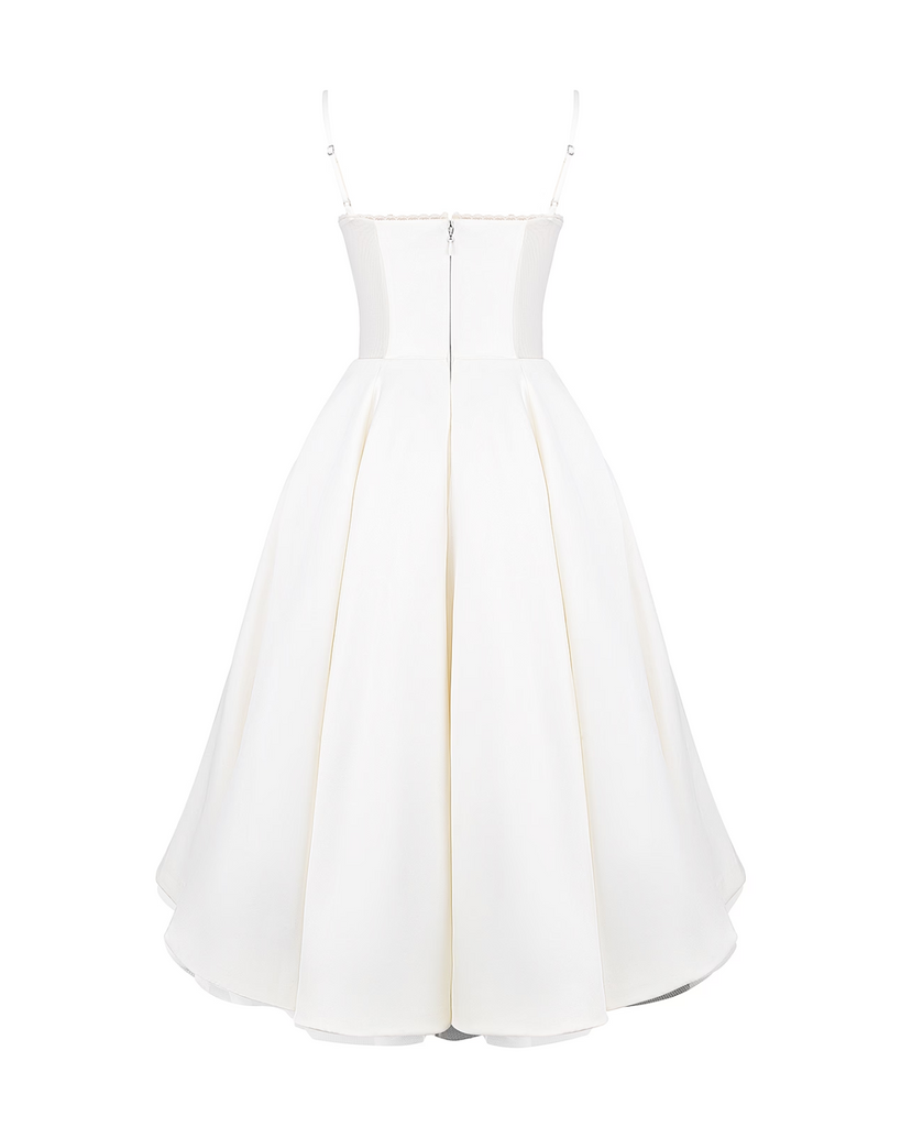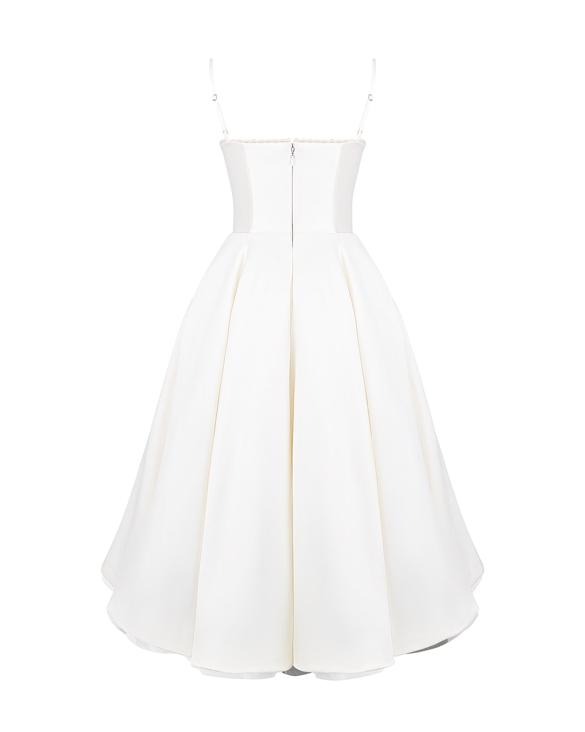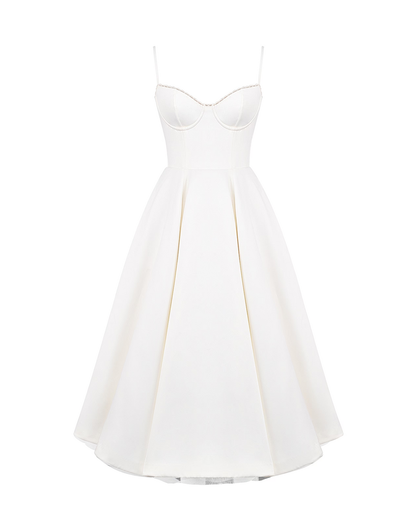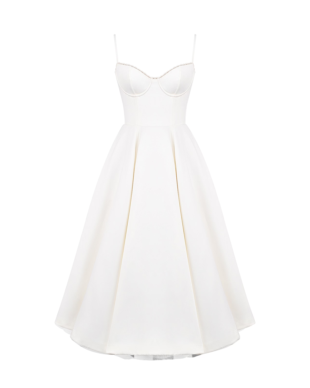 Confeccionado em um tecido lustroso com toque acetinado e um leve detalhe em powermesh, nosso vestido midi ‘Selene’ é digno de contos de fadas. O corpete é perfeitamente estruturado para afinar a cintura e possui um delicado decote em coração com bojo armado. As alças finas são ajustáveis para garantir o caimento ideal, e o destaque do ‘Selene’ é a saia midi fluida, finalizada com uma camada volumosa do tule mais macio, criando um visual deslumbrante que mantém a forma impecavelmente.